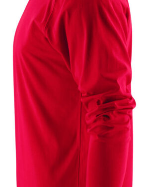 Langermet t-skjorte med moderne passform, med forsterkning i skuldersømmene og doble sømmer rundt halsen. Elastan i halsribb. Halsribb med fire lag for bedre stabilitet. I den indre venstre sidesømmen er det anordnet en lomme for å sy i en vaskebrikke. Leveres i en biobasert, komposterbar pose. Øko-Tex sertifisert.